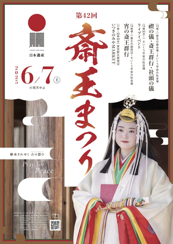 2025年6月7日(土)に開催した第42回斎王まつりの装束紹介から斎王についての歴史、当日のスケジュールや会場マップまで見どころ満載の公式パンフレットをPDF形式で公開中です!