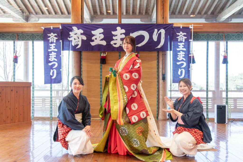 斎王・女別当・内侍・命婦・采女・女孺の6役を務めていただきます。